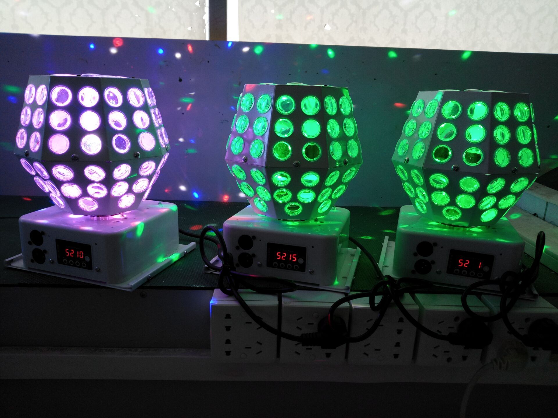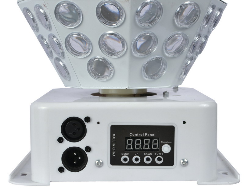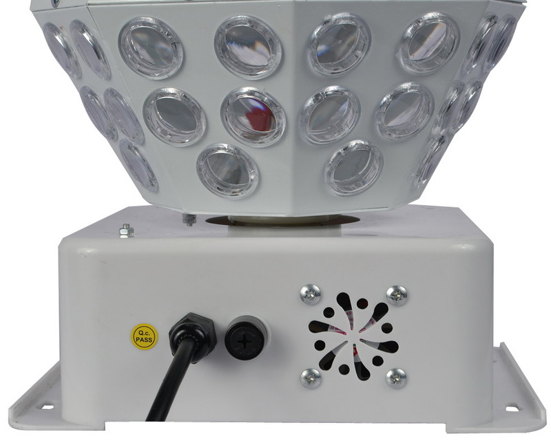 Technical parameters: Power supply: ac110-220v 50-60hz Light source: LED 1pcs*8 pieces of 4 colors Mode: voice control, self-walk, DMX512 Power: 20 w Weight: 2.3 kg Size: 370 x370x420mm