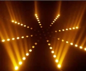 技术参数: 电压:AC90-240V50-60HZ 功率:80W 光源:14颗暖光或琥珀黄金LED灯珠,每颗3W色温2800K 控制模式:声控,自走,DMX512,主从 通道:2,4,18CH 频闪:0-30HZ电子频闪 发光角度:3度,出光角度:6度,光束强劲 重量:2.5kg 尺寸:100x6.5x9cm